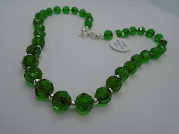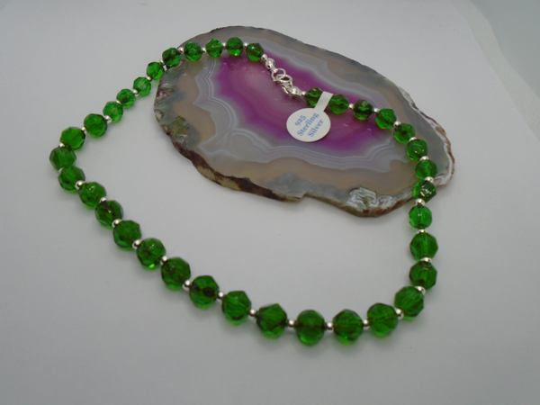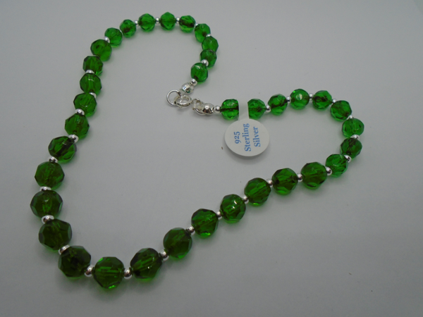 This Impressive Vintage Green Faceted Crystal & Silver Bead Restrung Sterling Silver Necklace.