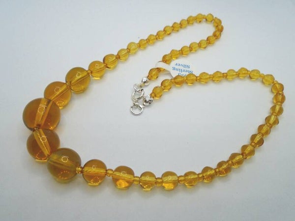 Vintage Jewellery Amber Graduated Glass Bead Long Necklace.