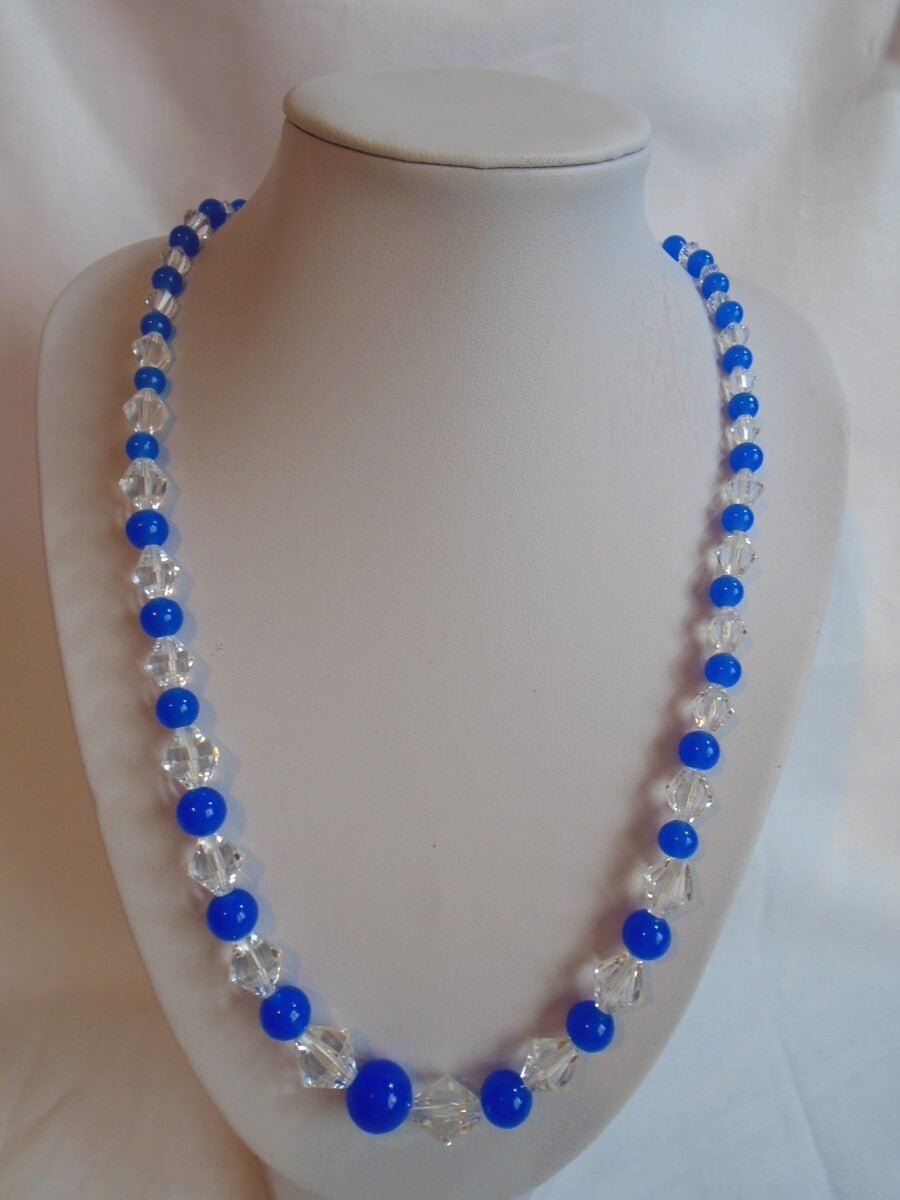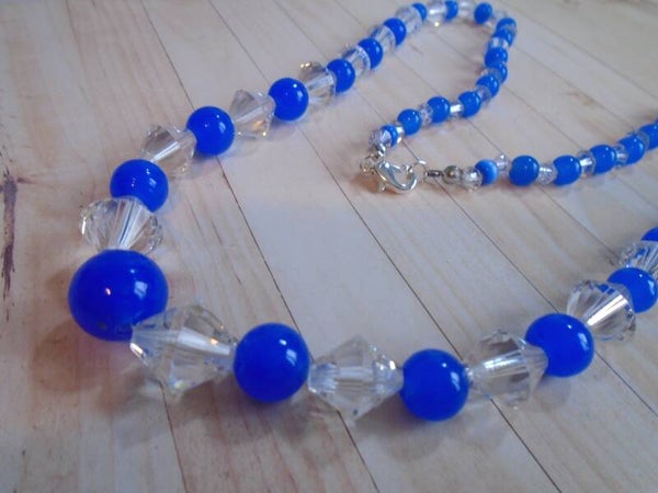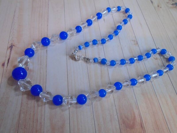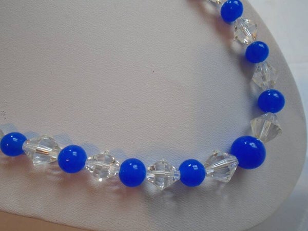 Beautiful Blue And Faceted Clear Glass Bead Necklace