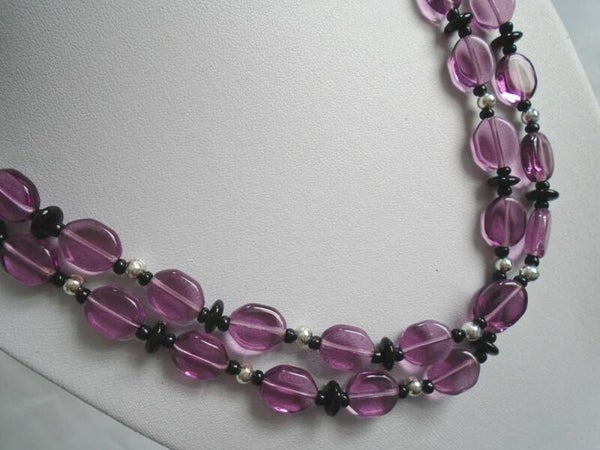 Vintage Pretty Amethyst & Black Glass Double Necklace.
