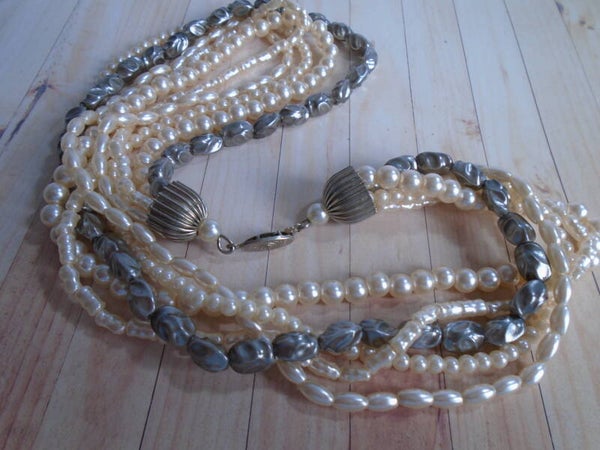 1950/60's 5 Row Rice Pearl Necklace 5 Different Colours.