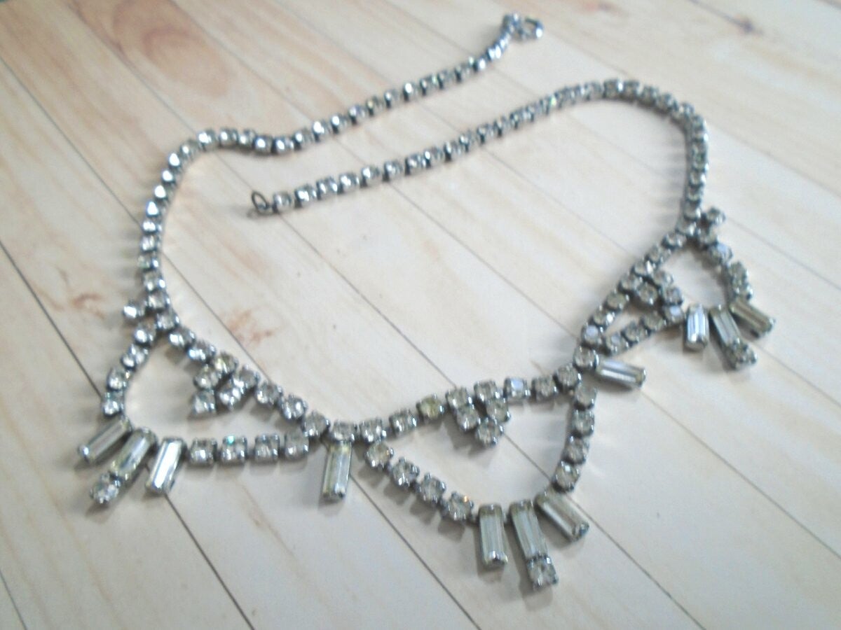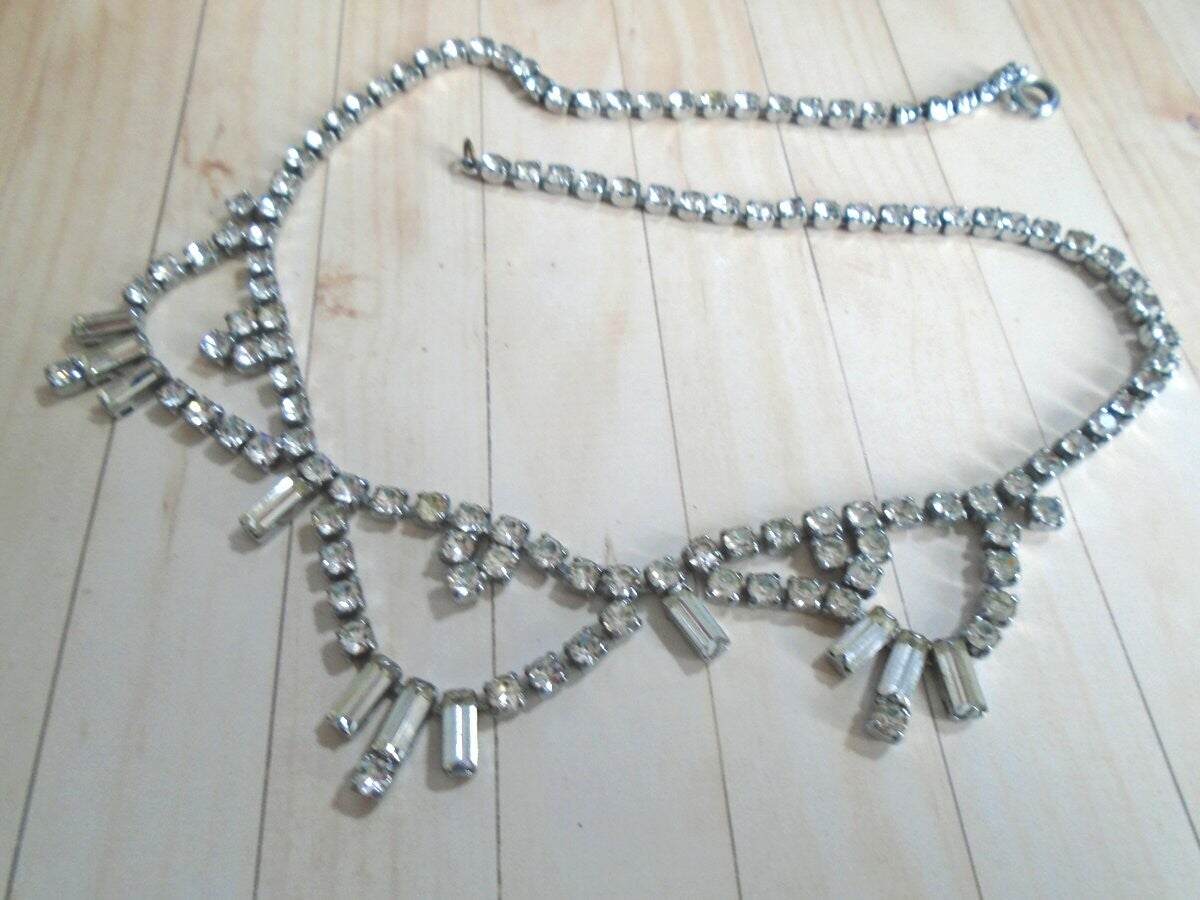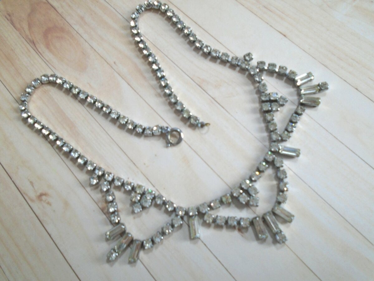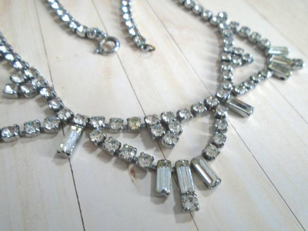 1950/60's - Crystal, Paste Necklace - Silvertone Metal.