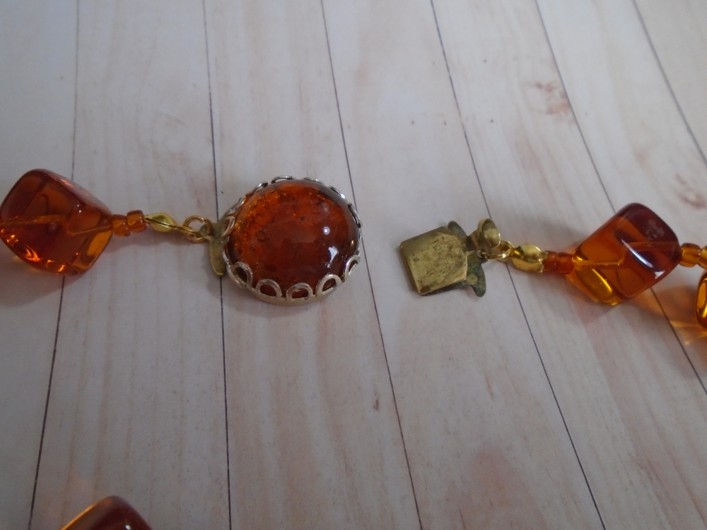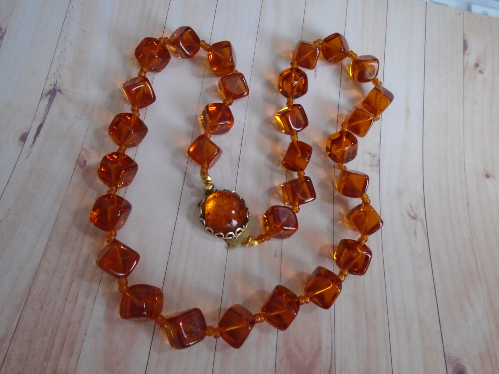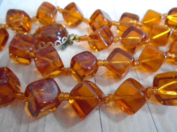 Lovely Vintage Cube Amber Crystal Glass Bead Necklace ~ West Germany.