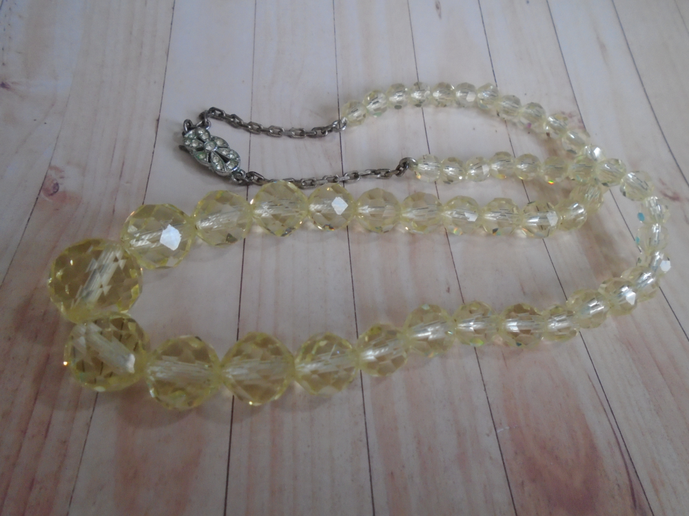 Vintage Faceted Lemon Crystal Graduated Bead with a Diamante Fishhook Clasp Necklace.