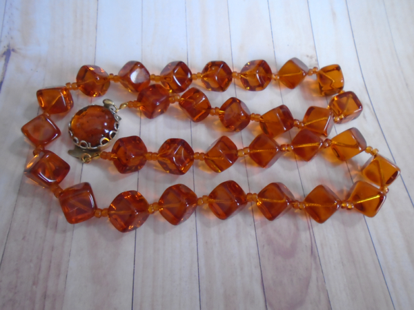 Lovely Vintage Cube Amber Crystal Glass Bead Necklace ~ West Germany.
