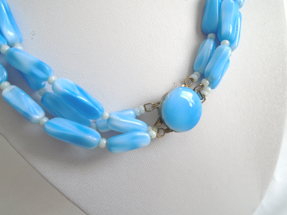Vintage Lovely 1950's Blue Glass Triple Necklace.