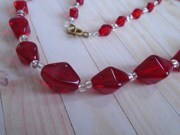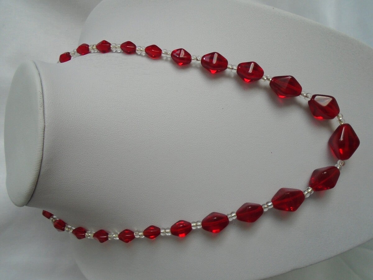 Lovely Vintage 1960/50's Red and Clear Glass Necklace.