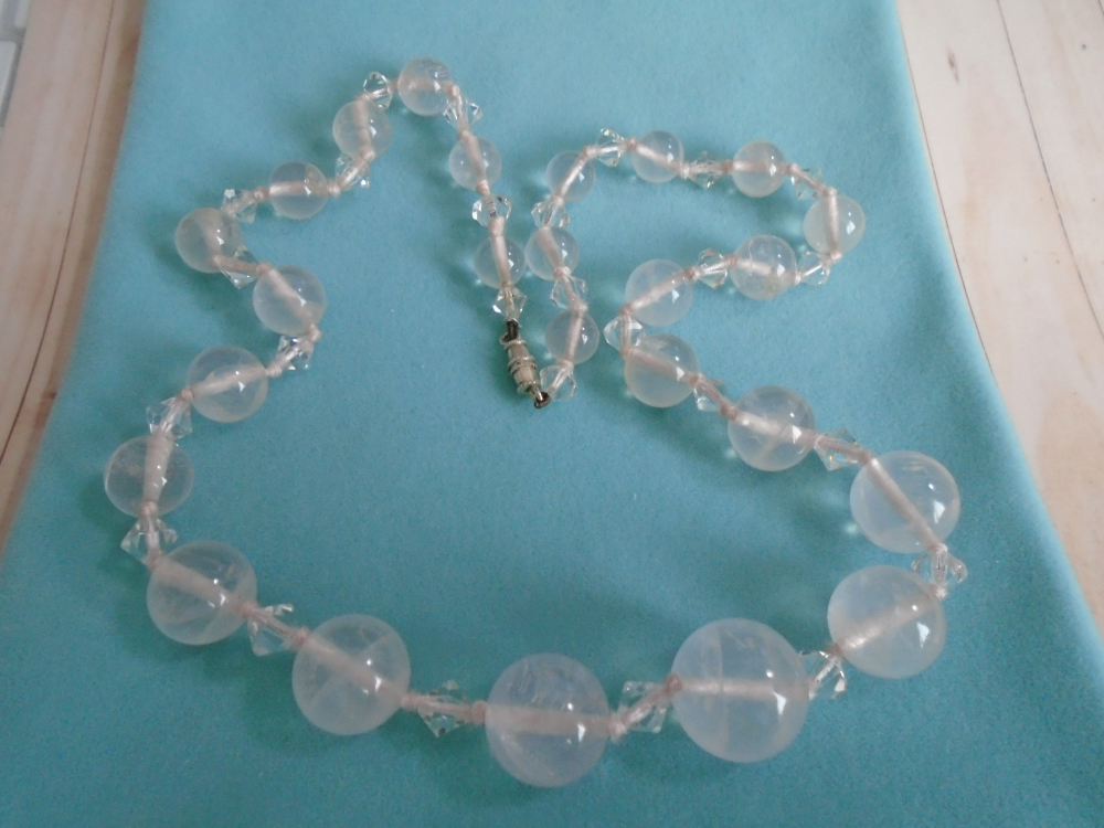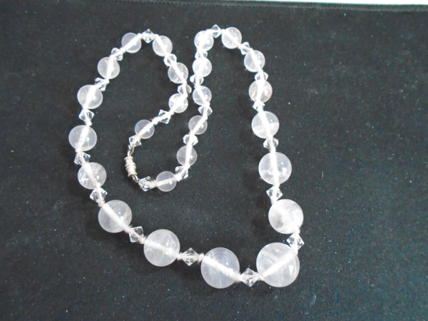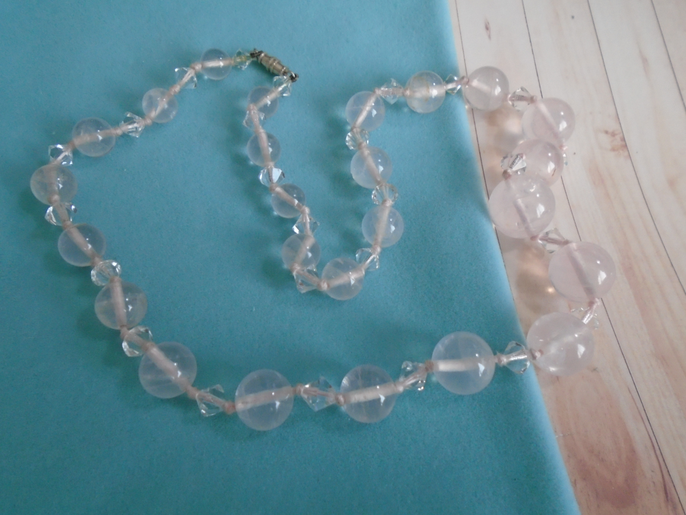 Vintage Pink Round Crystal Graduated Knotted Bead Necklace.