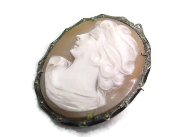 stunning Vintage Italian Silver 800 Hand Carved Art Nouveau Cameo Brooch/Pendant.