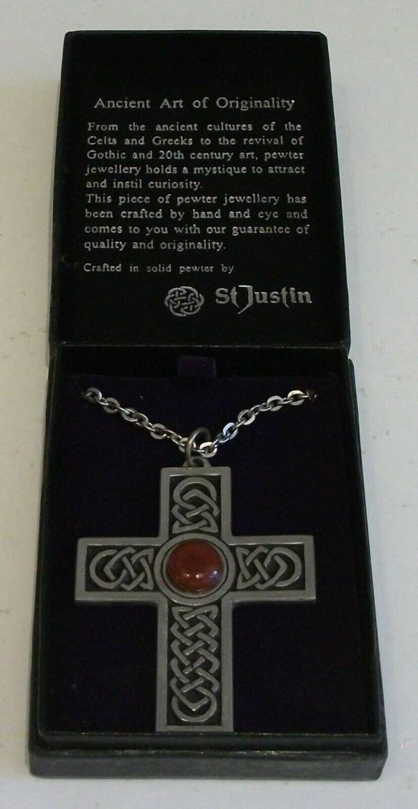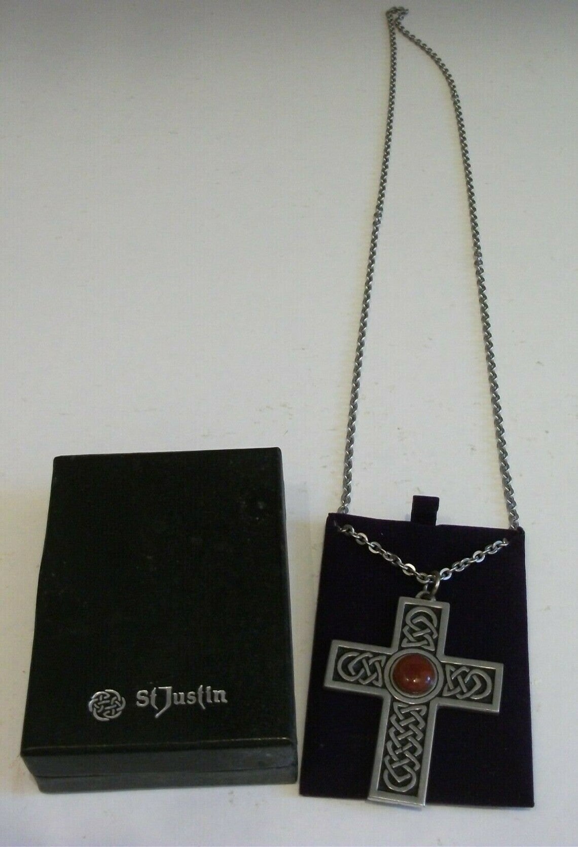 St Justin Cross and Chain Crafted in Solid Pewter - Never Been Worn - Signed by St. Justin of Cornwall.