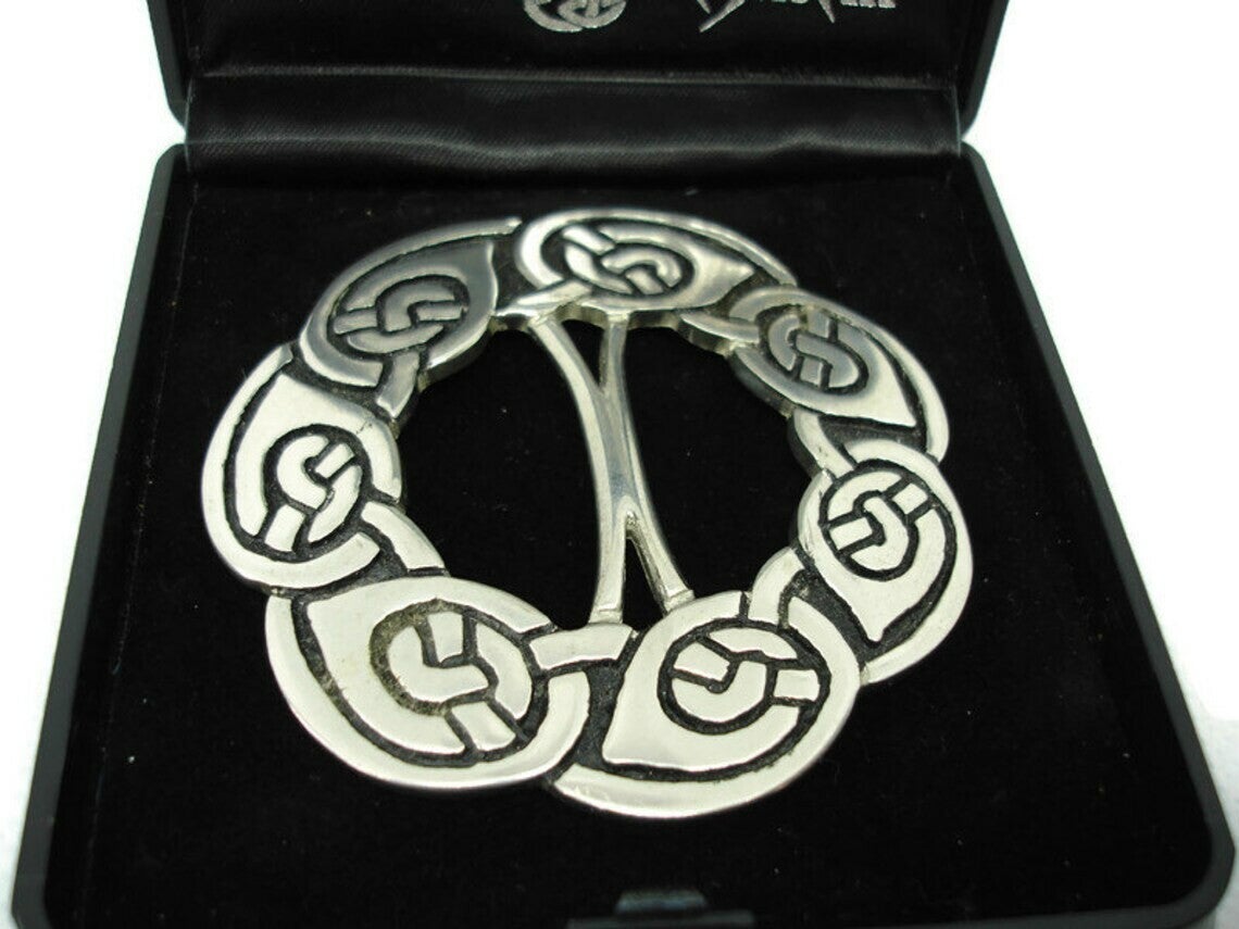 Large Celtic Design Pewter Belt Buckle . Signed by St. Justin of Cornwall.