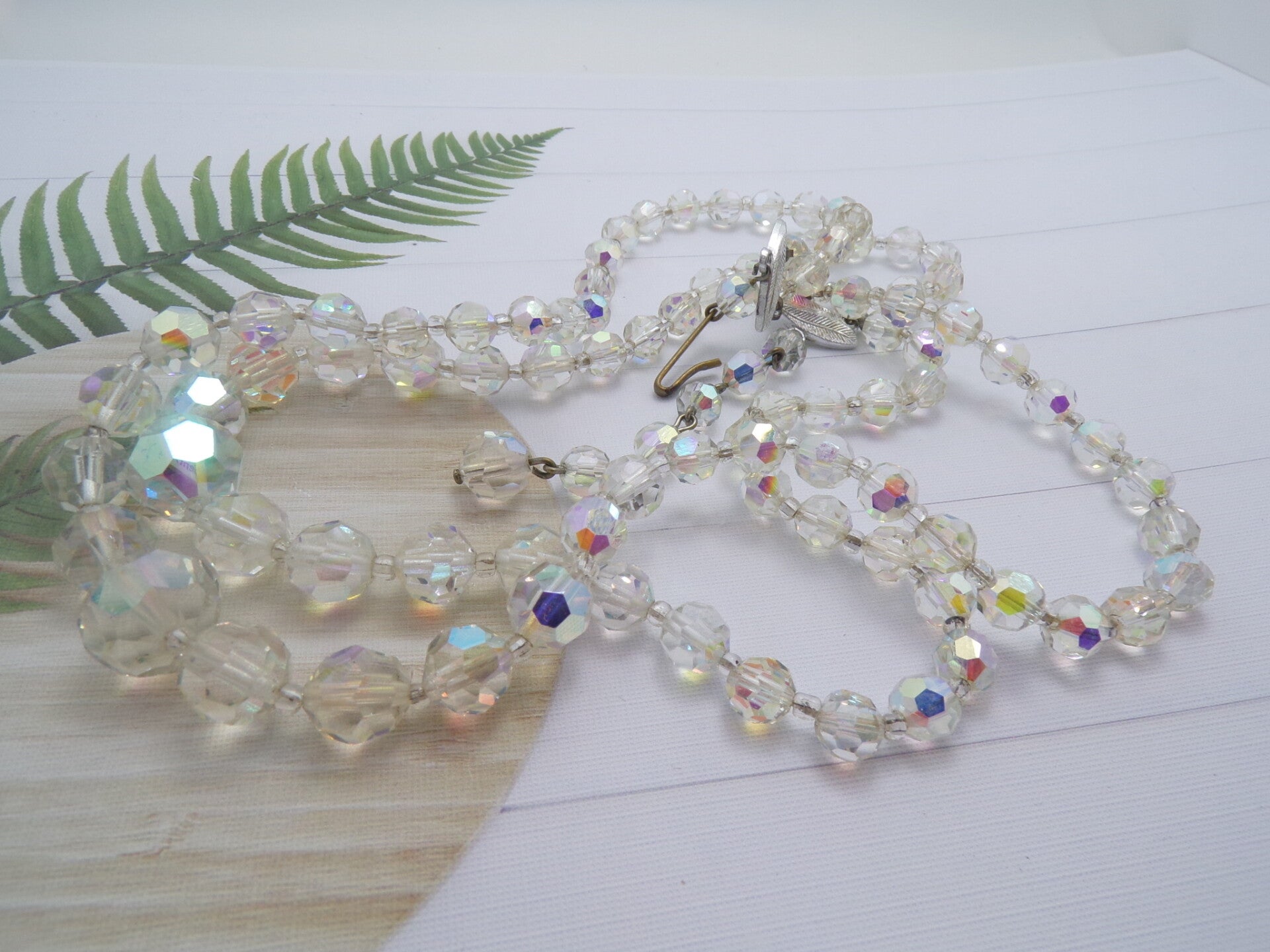 Attractive Vintage AB Faceted & Seed Bead Graduated Twin Drop Necklace.