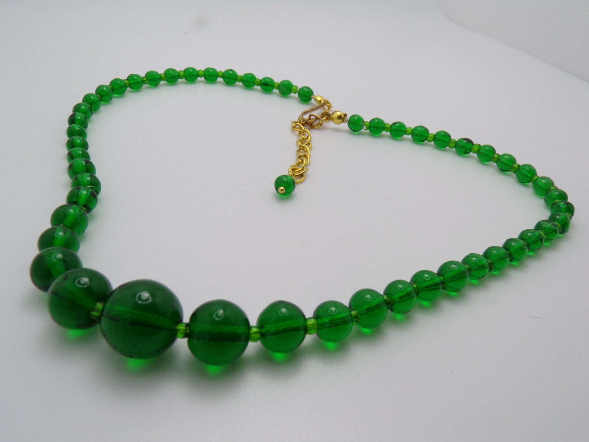 Beautiful Vintage Green West Germany Glass Coloured Gold Tone Finish Graduating Necklace.
