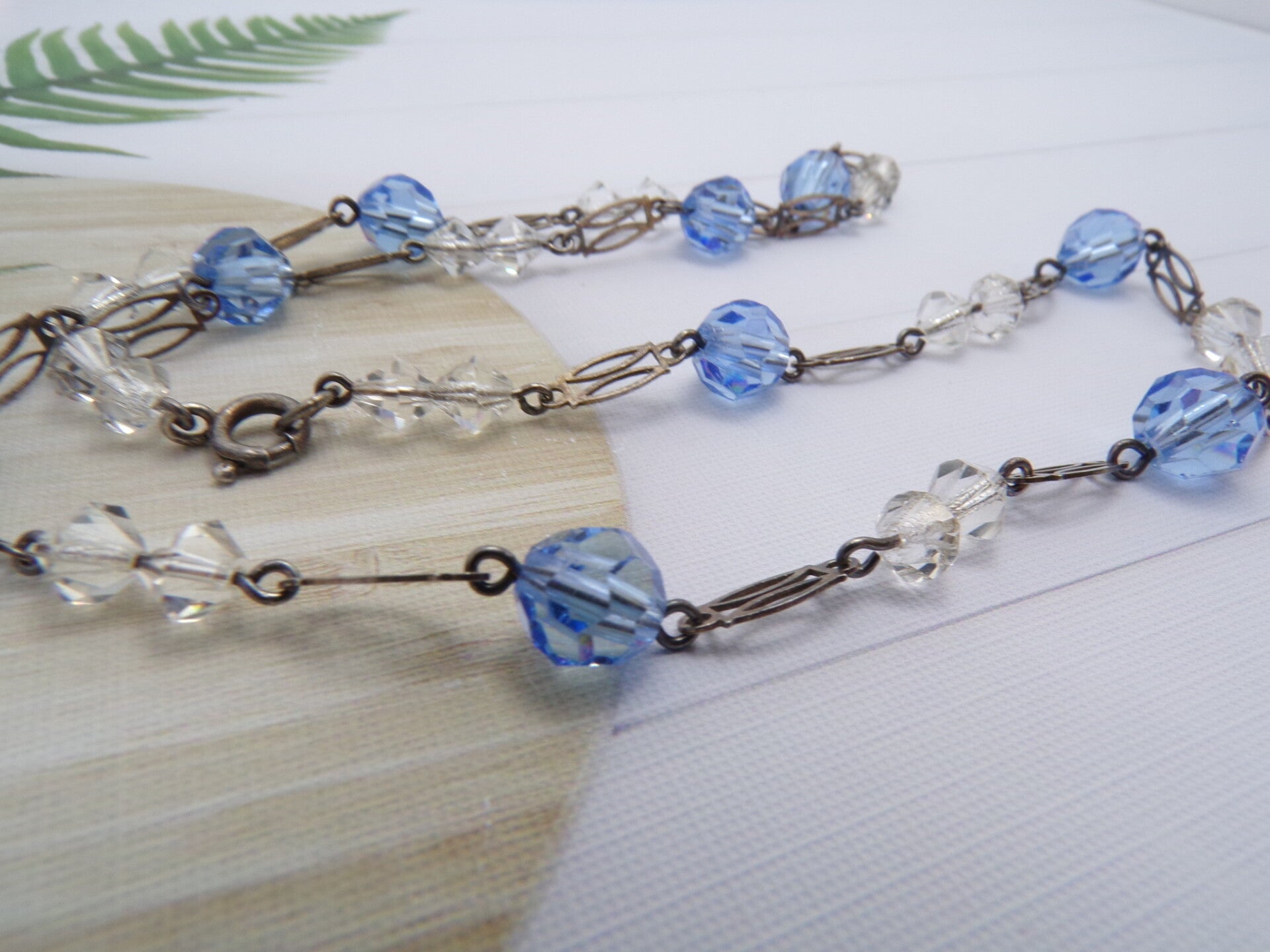 Beautiful Vintage Faceted Cornflower Crystal Linked Necklace.