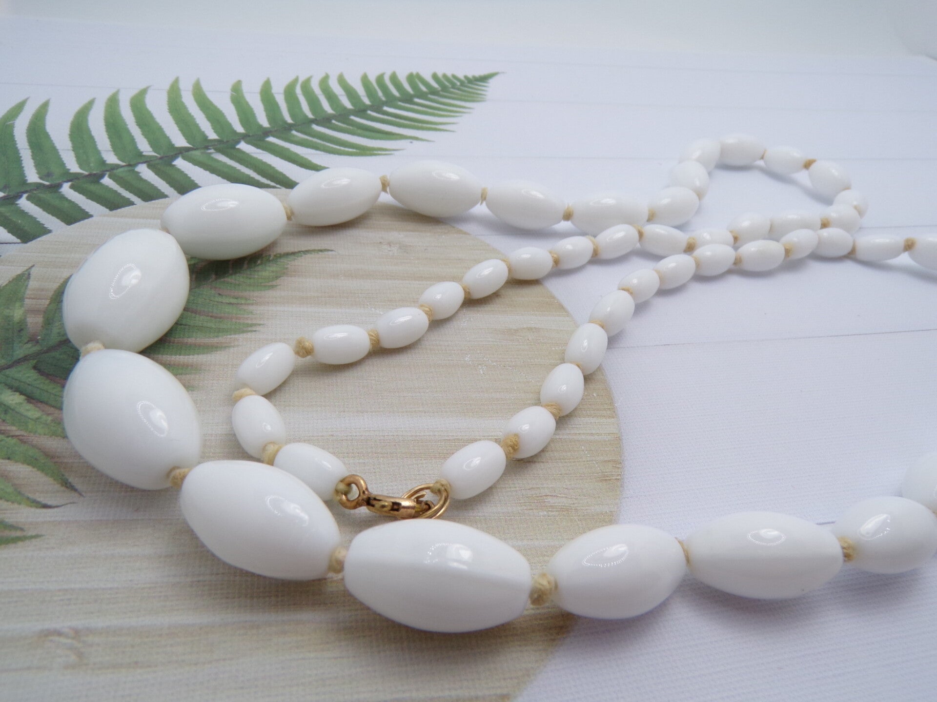 Beautiful Vintage Hand Knotted Graduated Milk Glass Bead Necklace