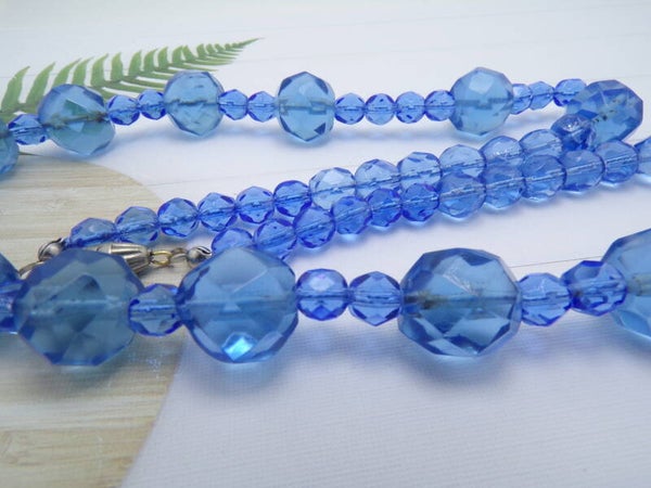 Stunning Vintage Vintage Blue Faceted Glass Necklace.
