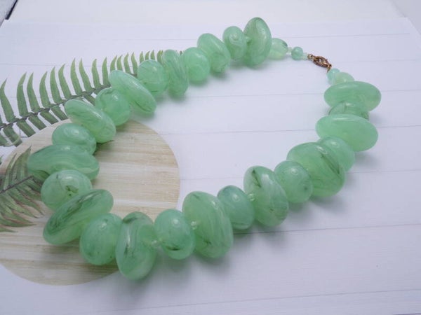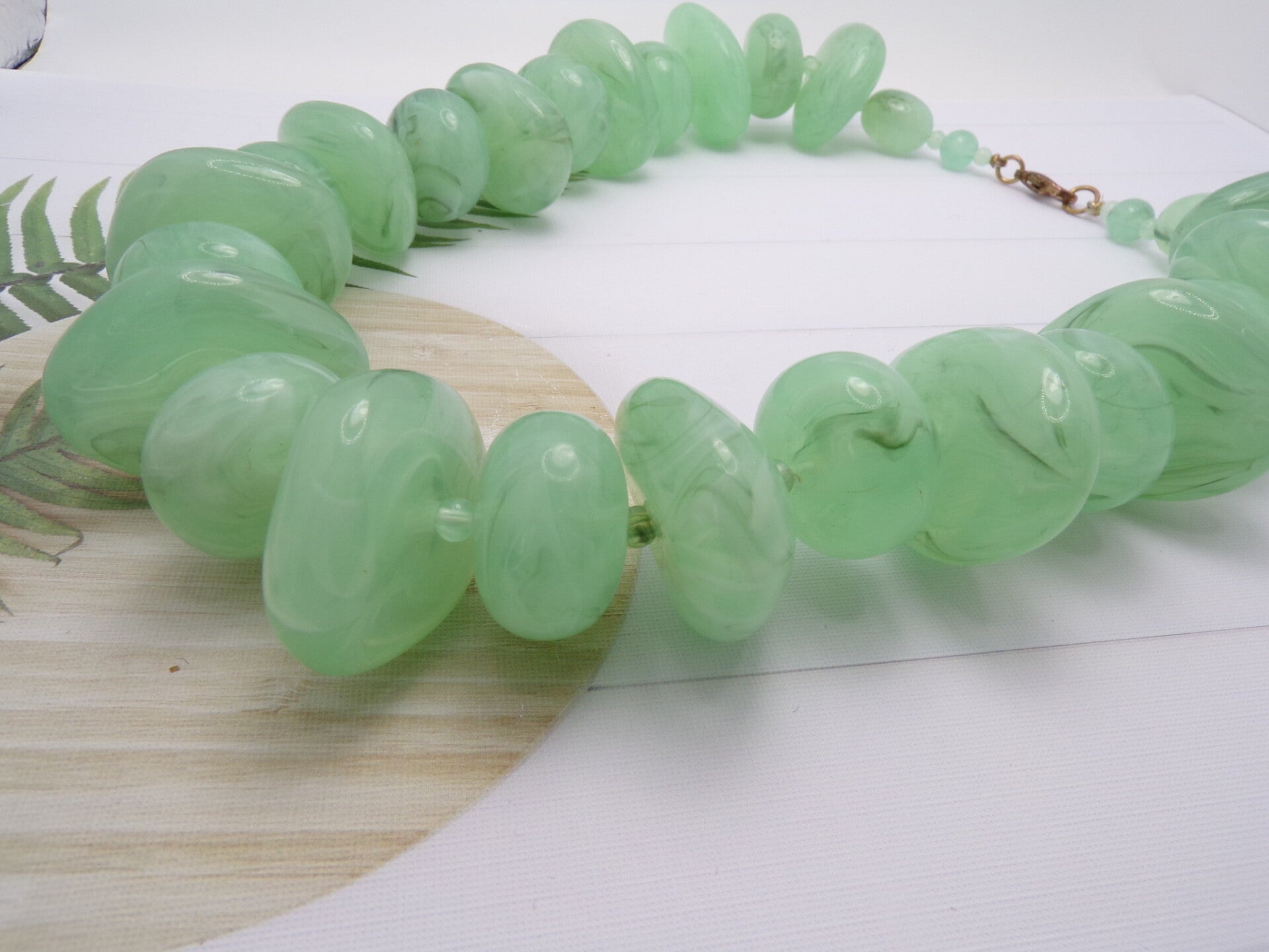 Stunning Vintage Green Resin Large Chunky Bold Barrel Bead Necklace